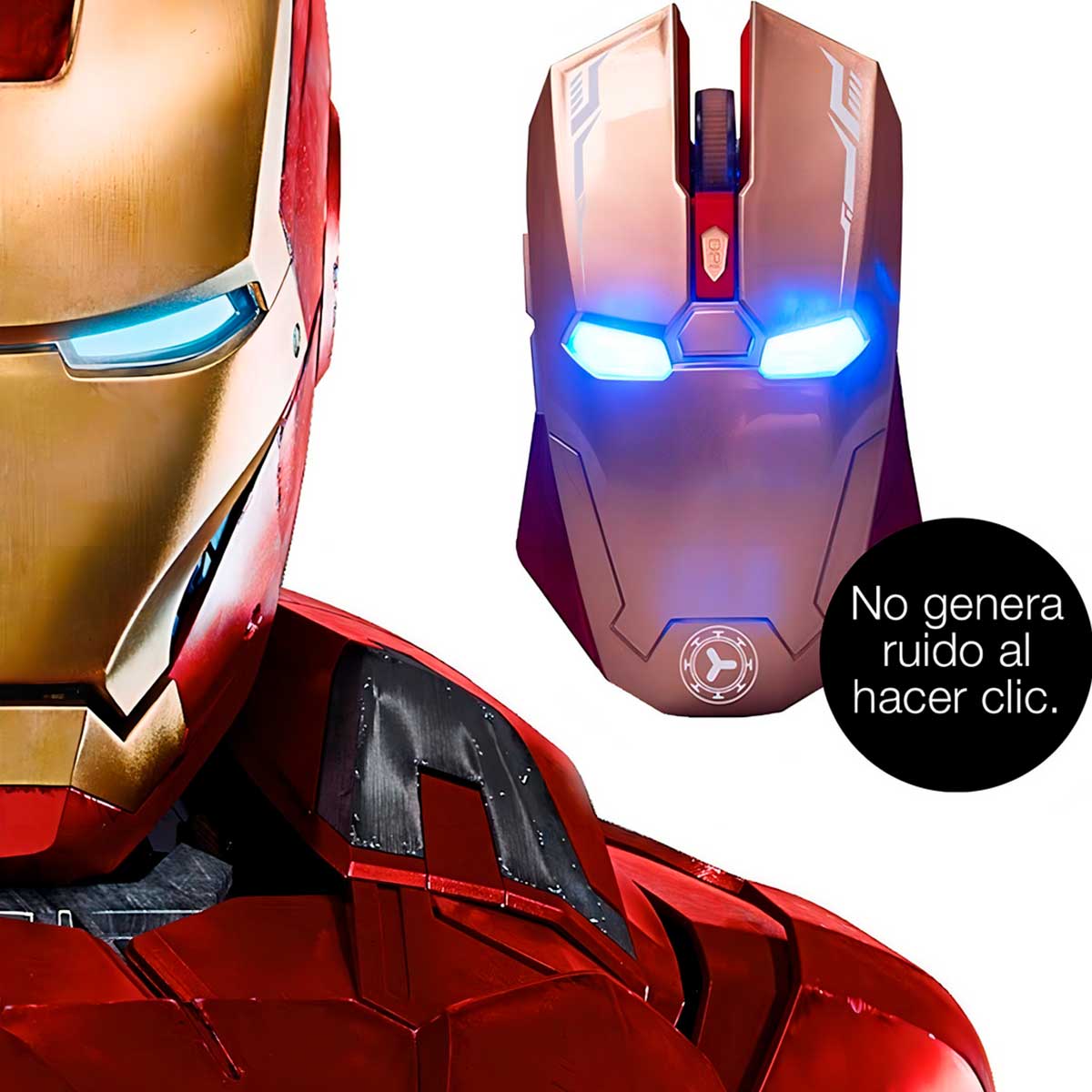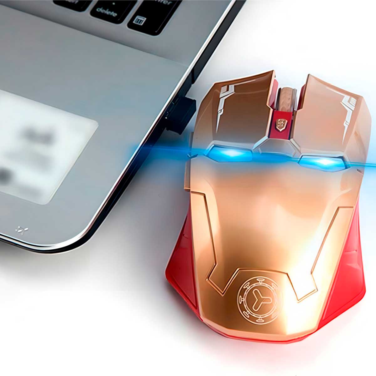 Mouse inalámbrico gamer Taonology Iron Man con diseño ergonómico, iluminación LED y sensor óptico de hasta 2400 DPI, ideal para una experiencia de juego precisa, cómoda y con estilo.